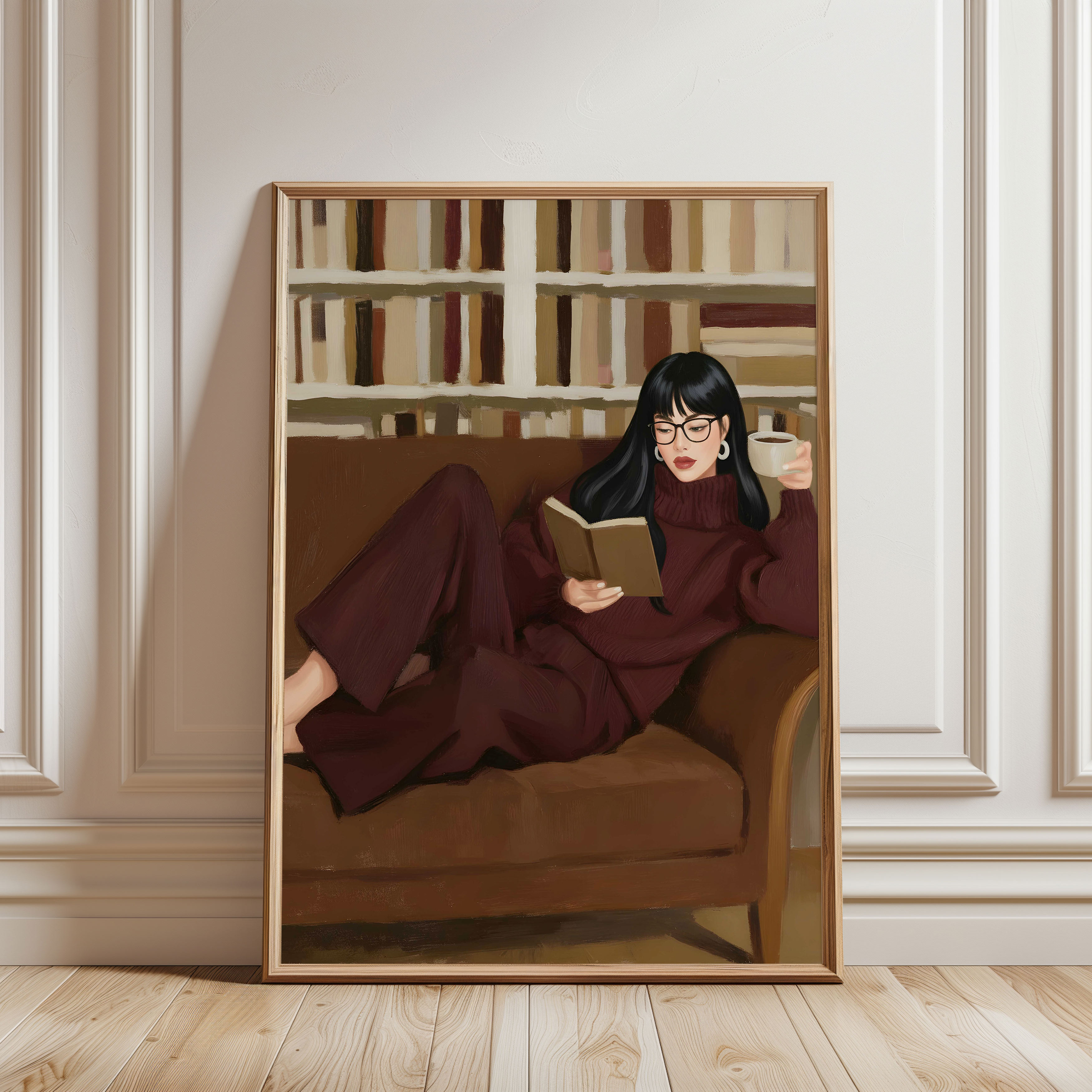 Quiet confidence, uninterrupted. This wall art captures a woman fully immersed in her own rhythm: reading, resting, thinking, and savoring a slow moment surrounded by books. It’s a visual reminder that depth, intelligence, and presence don’t need to be loud to be powerful. Best placed near your favorite chair, bookshelf, or morning coffee spot, where quiet moments are honored and intention sets the tone for the day.